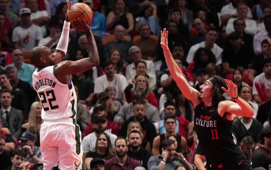 籃球直播吧11月29日訊 NBA季中錦標(biāo)賽,熱火主場對陣雄鹿。最終,雄鹿131-124戰(zhàn)勝熱火,雄鹿以小組第一的成績成功晉級錦標(biāo)賽8強。